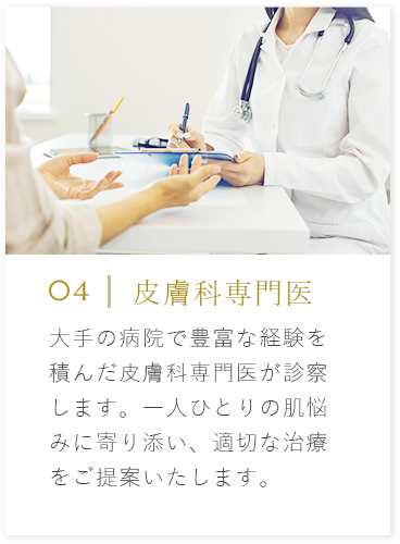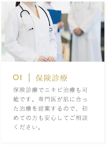 「長年ニキビで悩んでいる」「市販の薬を試したけど治らない」「治っても繰り返しできる」など、どこに相談したらいいのか分からなかった方へ、患者様のお肌の状態に合わせたより効果的なニキビ治療をホームケアまでトータルサポート致します。