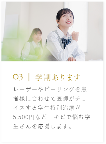 | 治療名 | サリチル酸マクロゴールピーリング + 面ぽう圧出 学生特別治療 |